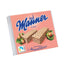 Die Manner Original Neapolitaner Waffel ist eine beliebte Süßigkeit aus Österreich. Inmitten der vielen Schichten knusprigen Rührkuchens befindet sich eine zarte Nusscreme, die sanft auf der Zunge zergeht und ihr köstliches Aroma offenbart. Die weichen Stücke werden in mundgerechte Stücke geteilt, die schnell gegessen werden können. Ob zu Hause oder unterwegs, allein oder mit der Firma, dieser Snack ist immer ein duftender Begleiter.